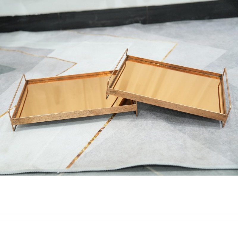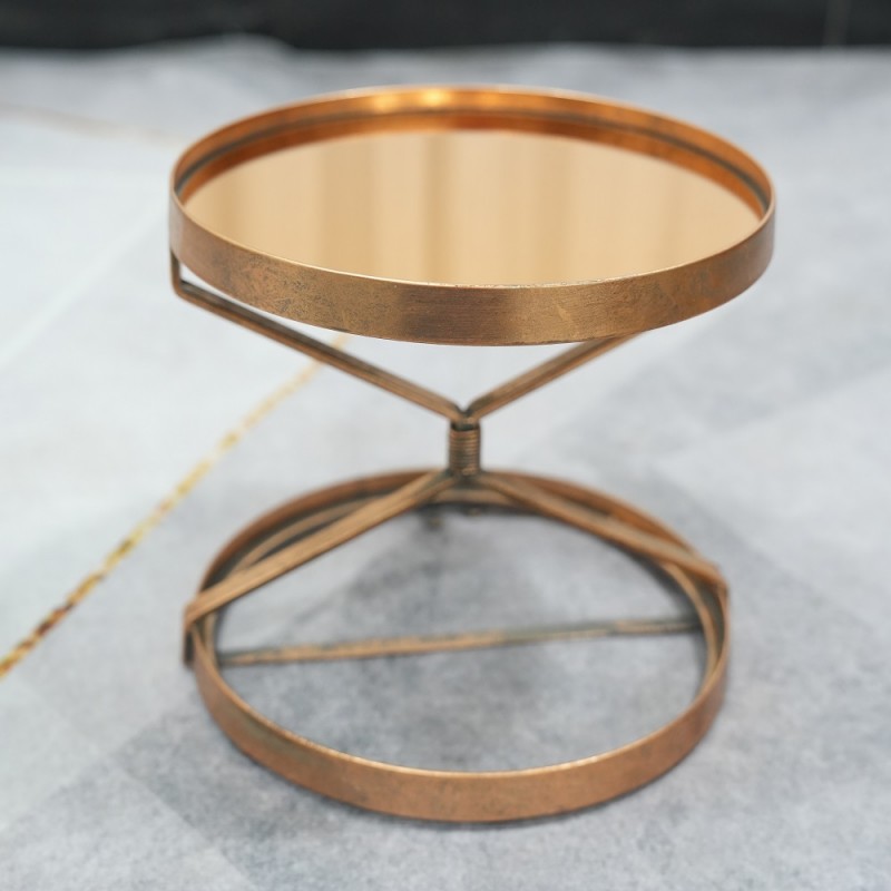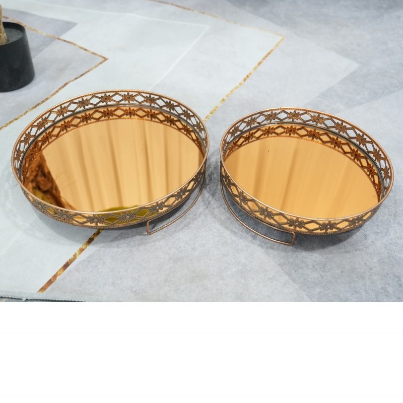 Gold Round Display Decorative Vanity Mirror Tray, Metal Mirrored Jewelry Tray