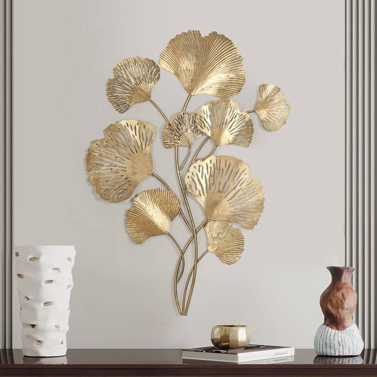 3D Wall Decor, Ginkgo Leaf Metal Wall Art Hanging Decor for Living Room